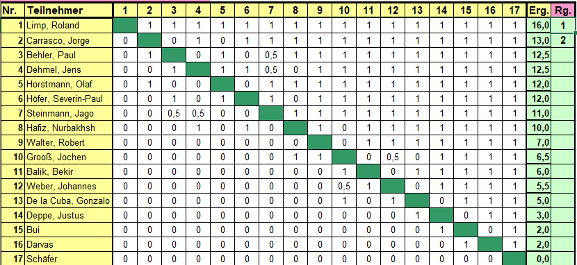Am gestrigen Freitag gewann Roland Limp überragend unser Monatsblitz. Von 16 Partien gewann er alle 16 ohne auch nur ein remis abzugeben.